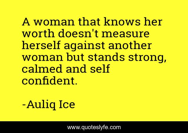This page presents the quote "A woman that knows her worth doesn't measure herself against another woman but stands strong, calmed and self confident.". Author of this quote is Auliq Ice. This quote is about women-s-day, girls, sayings-for-mom, mother-s-day, women,.