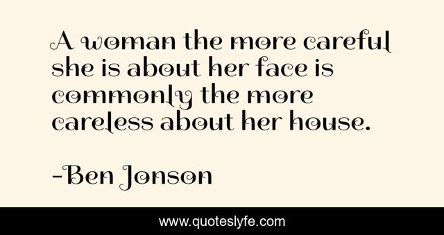 This page presents the quote "A woman the more careful she is about her face is commonly the more careless about her house.". Author of this quote is Ben Jonson. .
