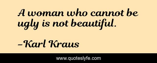 "Karl Kraus Quotes." Quoteslyfe.com, 2025. Mon. 08 Dec. 2025. <https://www.quoteslyfe.com/quote/A-woman-who-cannot-be-ugly-is-60672>.