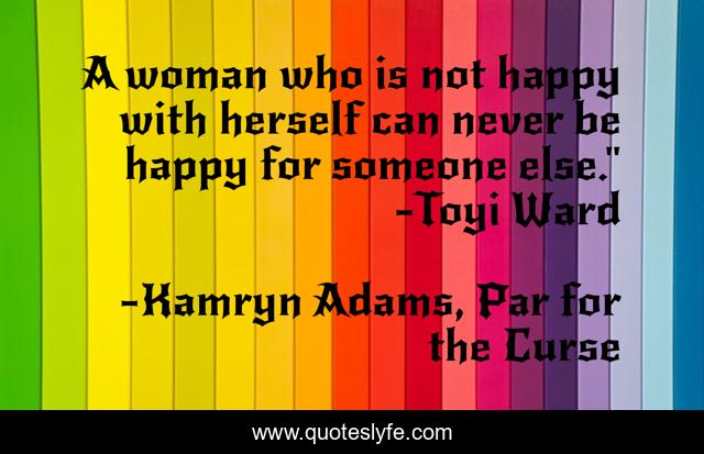 This page presents the quote "A woman who is not happy with herself can never be happy for someone else." -Toyi Ward". Author of this quote is Kamryn Adams, Par for the Curse. This quote is about self-help, women,.