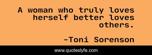 This page presents the quote "A woman who truly loves herself better loves others.". Author of this quote is Toni Sorenson. This quote is about woman, love, affection,.