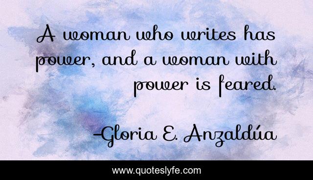 This page presents the quote "A woman who writes has power, and a woman with power is feared.". Author of this quote is Gloria E. Anzaldúa. This quote is about enthusiasm, inspirational,.