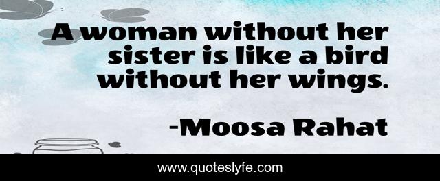 This page presents the quote "A woman without her sister is like a bird without her wings.". Author of this quote is Moosa Rahat. This quote is about sister, woman, bird, wings,.