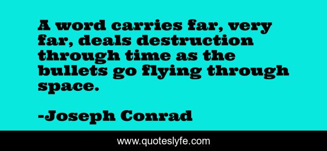 This page presents the quote "A word carries far, very far, deals destruction through time as the bullets go flying through space.". Author of this quote is Joseph Conrad. This quote is about flying, time, space,.
