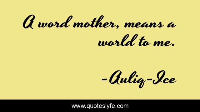 "Auliq-Ice Quotes." Quoteslyfe.com, 2025. Sat. 06 Dec. 2025. <https://www.quoteslyfe.com/quote/A-word-mother-means-a-world-to-72804>.