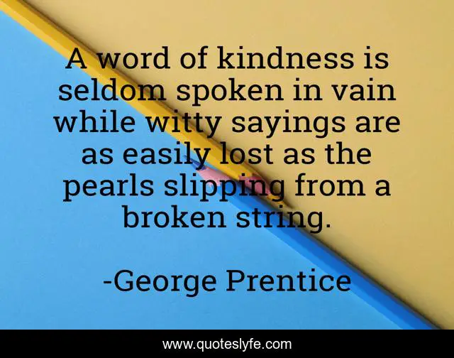 This page presents the quote "A word of kindness is seldom spoken in vain while witty sayings are as easily lost as the pearls slipping from a broken string.". Author of this quote is George Prentice. This quote is about helping, people,.