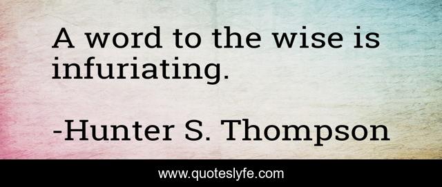 "Hunter S. Thompson Quotes." Quoteslyfe.com, 2025. Fri. 05 Dec. 2025. <https://www.quoteslyfe.com/quote/A-word-to-the-wise-is-infuriating-6409>.