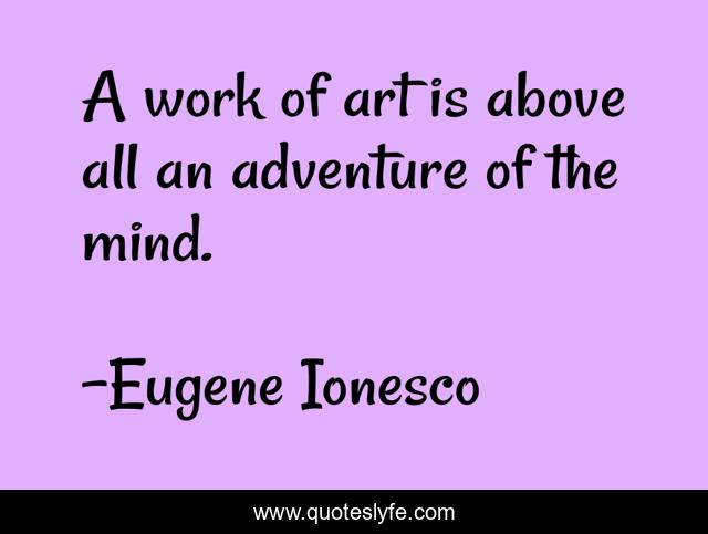 This page presents the quote "A work of art is above all an adventure of the mind.". Author of this quote is Eugene Ionesco. This quote is about art, mind, adventure,.