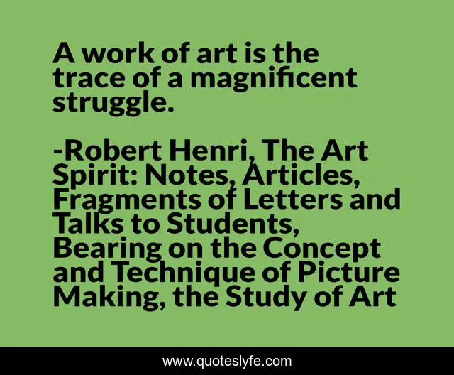 "Robert Henri, The Art Spirit: Notes, Articles, Fragments of Letters and Talks to Students, Bearing on the Concept and Technique of Picture Making, the Study of Art Quotes." Quoteslyfe.com, 2025. Fri. 05 Dec. 2025. <https://www.quoteslyfe.com/quote/A-work-of-art-is-the-trace-204741>.