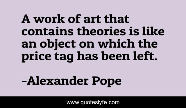 This page presents the quote "A work of art that contains theories is like an object on which the price tag has been left.". Author of this quote is Alexander Pope. This quote is about price, work, like,.