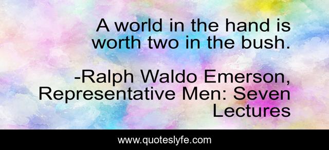 "Ralph Waldo Emerson, Representative Men: Seven Lectures Quotes." Quoteslyfe.com, 2025. Tue. 09 Dec. 2025. <https://www.quoteslyfe.com/quote/A-world-in-the-hand-is-worth-31549>.