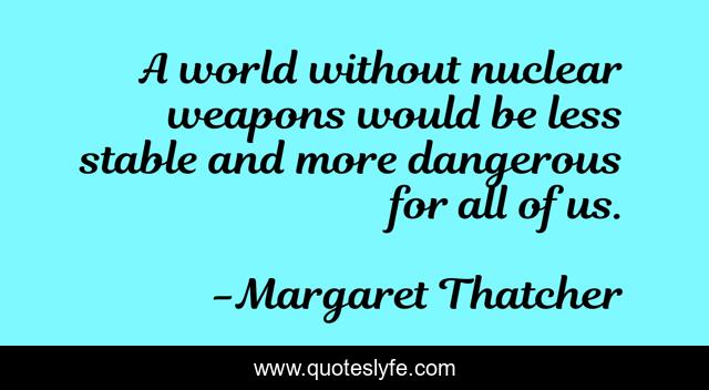 "Margaret Thatcher Quotes." Quoteslyfe.com, 2025. Sat. 06 Dec. 2025. <https://www.quoteslyfe.com/quote/A-world-without-nuclear-weapons-would-be-303927>.
