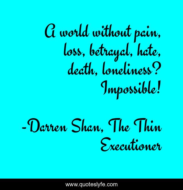 "Darren Shan, The Thin Executioner Quotes." Quoteslyfe.com, 2025. Sat. 06 Dec. 2025. <https://www.quoteslyfe.com/quote/A-world-without-pain-loss-betrayal-hate-89143>.