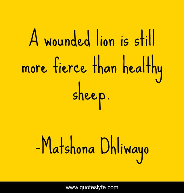 "Matshona Dhliwayo Quotes." Quoteslyfe.com, 2025. Fri. 05 Dec. 2025. <https://www.quoteslyfe.com/quote/A-wounded-lion-is-still-more-fierce-190011>.
