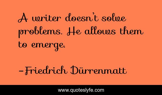 This page presents the quote "A writer doesn’t solve problems. He allows them to emerge.". Author of this quote is Friedrich Dürrenmatt. This quote is about revelation, life, writing,.