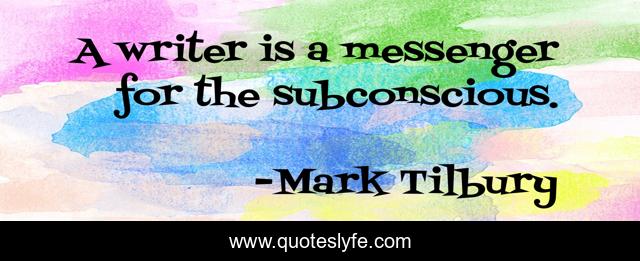 This page presents the quote "A writer is a messenger for the subconscious.". Author of this quote is Mark Tilbury. This quote is about ideas, writing,.