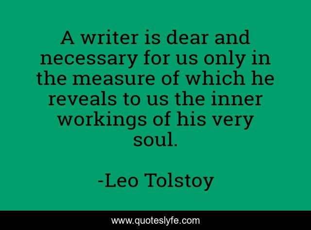 This page presents the quote "A writer is dear and necessary for us only in the measure of which he reveals to us the inner workings of his very soul.". Author of this quote is Leo Tolstoy. This quote is about writer, soul,.