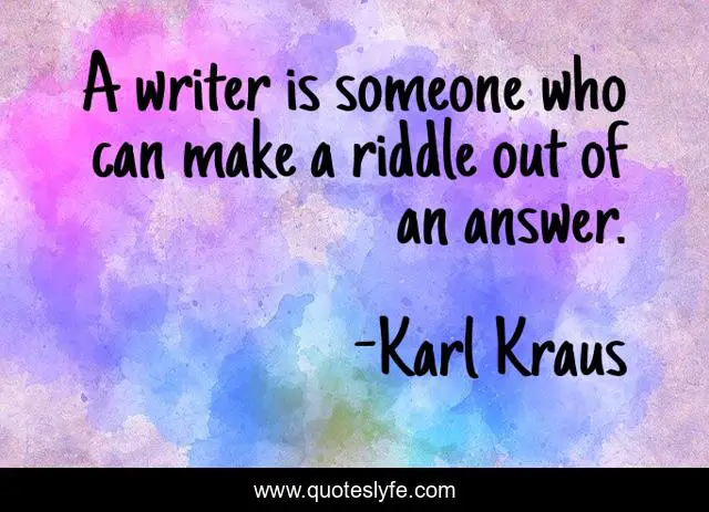 This page presents the quote "A writer is someone who can make a riddle out of an answer.". Author of this quote is Karl Kraus. .