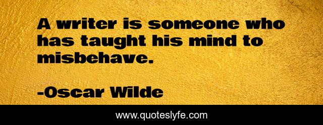 This page presents the quote "A writer is someone who has taught his mind to misbehave.". Author of this quote is Oscar Wilde. This quote is about writers, on-writing,.