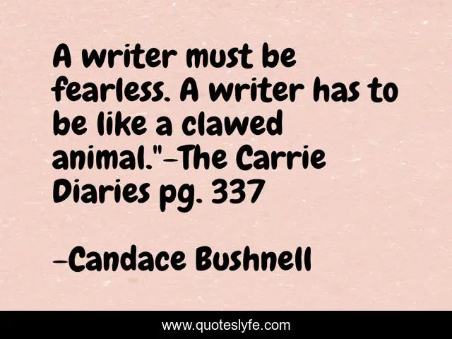 This page presents the quote "A writer must be fearless. A writer has to be like a clawed animal."-The Carrie Diaries pg. 337". Author of this quote is Candace Bushnell. .
