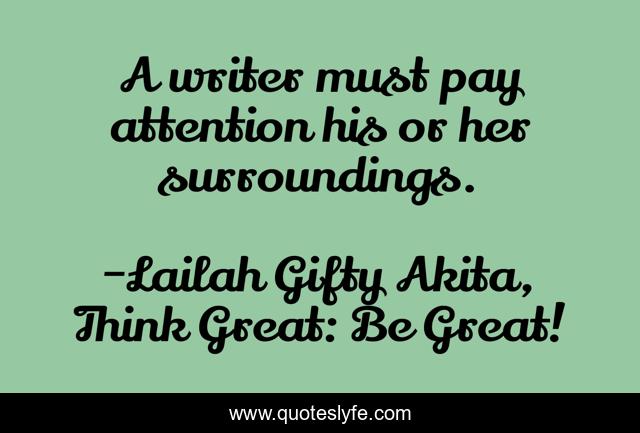 "Lailah Gifty Akita, Think Great: Be Great! Quotes." Quoteslyfe.com, 2025. Sat. 06 Dec. 2025. <https://www.quoteslyfe.com/quote/A-writer-must-pay-attention-his-or-186945>.