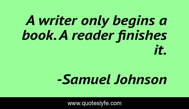This page presents the quote "A writer only begins a book. A reader finishes it.". Author of this quote is Samuel Johnson. This quote is about author, reader,.