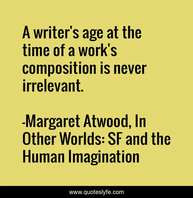 "Margaret Atwood, In Other Worlds: SF and the Human Imagination Quotes." Quoteslyfe.com, 2025. Sat. 06 Dec. 2025. <https://www.quoteslyfe.com/quote/A-writer-s-age-at-the-time-186845>.