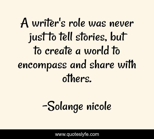 "Solange nicole Quotes." Quoteslyfe.com, 2025. Mon. 08 Dec. 2025. <https://www.quoteslyfe.com/quote/A-writer-s-role-was-never-just-82764>.