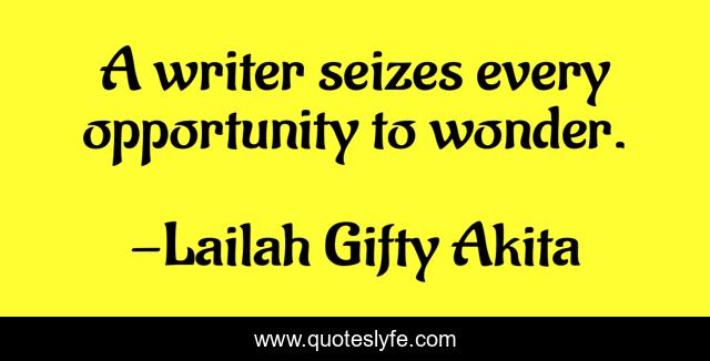 "Lailah Gifty Akita Quotes." Quoteslyfe.com, 2025. Sat. 06 Dec. 2025. <https://www.quoteslyfe.com/quote/A-writer-seizes-every-opportunity-to-wonder-108198>.
