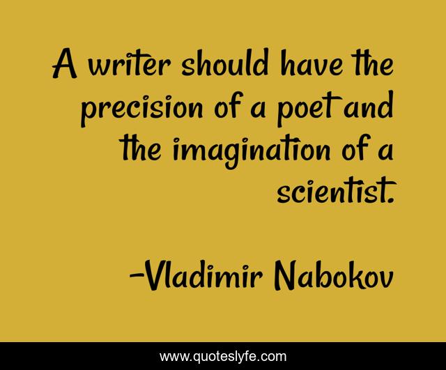 This page presents the quote "A writer should have the precision of a poet and the imagination of a scientist.". Author of this quote is Vladimir Nabokov. .