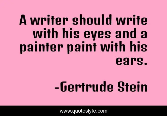 This page presents the quote "A writer should write with his eyes and a painter paint with his ears.". Author of this quote is Gertrude Stein. This quote is about paint, eyes, writer,.