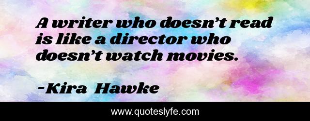 This page presents the quote "A writer who doesn’t read is like a director who doesn’t watch movies.". Author of this quote is Kira Hawke. This quote is about books, reading, writing,.