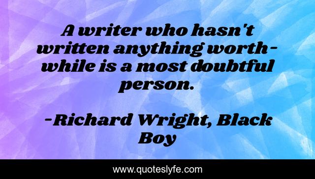 This page presents the quote "A writer who hasn't written anything worth-while is a most doubtful person.". Author of this quote is Richard Wright, Black Boy. .