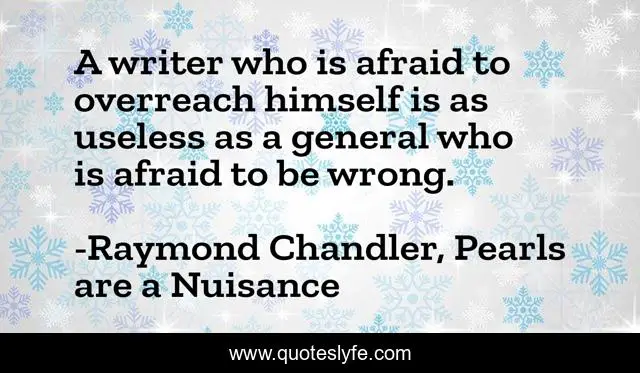 "Raymond Chandler, Pearls are a Nuisance Quotes." Quoteslyfe.com, 2025. Sat. 06 Dec. 2025. <https://www.quoteslyfe.com/quote/A-writer-who-is-afraid-to-overreach-125793>.
