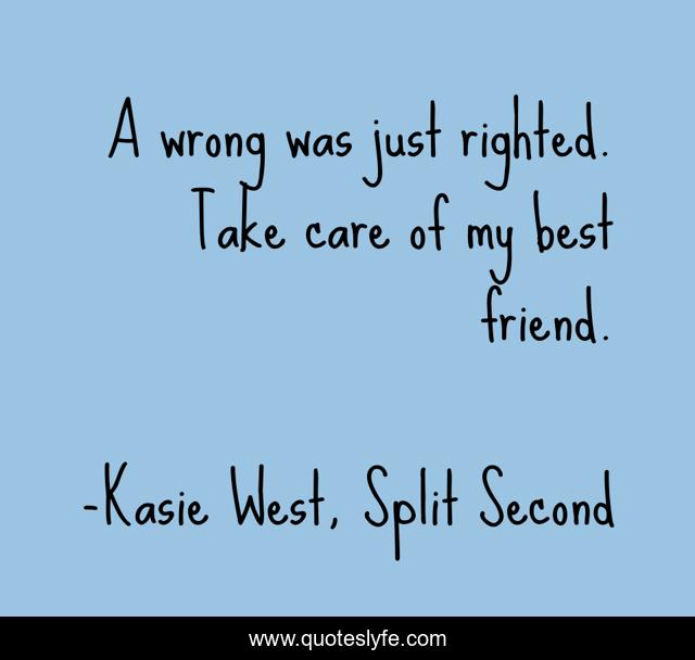 "Kasie West, Split Second Quotes." Quoteslyfe.com, 2025. Sun. 07 Dec. 2025. <https://www.quoteslyfe.com/quote/A-wrong-was-just-righted-Take-care-226761>.