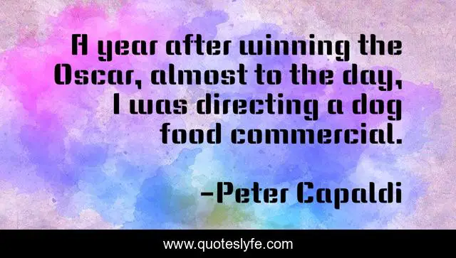 This page presents the quote "A year after winning the Oscar, almost to the day, I was directing a dog food commercial.". Author of this quote is Peter Capaldi. This quote is about dog, day, winning,.