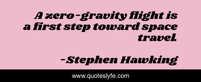This page presents the quote "A zero-gravity flight is a first step toward space travel.". Author of this quote is Stephen Hawking. This quote is about first step, step, travel,.