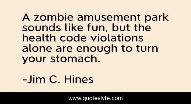 This page presents the quote "A zombie amusement park sounds like fun, but the health code violations alone are enough to turn your stomach.". Author of this quote is Jim C. Hines. This quote is about alone, fun, park,.