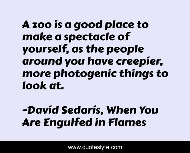 This page presents the quote "A zoo is a good place to make a spectacle of yourself, as the people around you have creepier, more photogenic things to look at.". Author of this quote is David Sedaris, When You Are Engulfed in Flames. This quote is about anger, humor,.