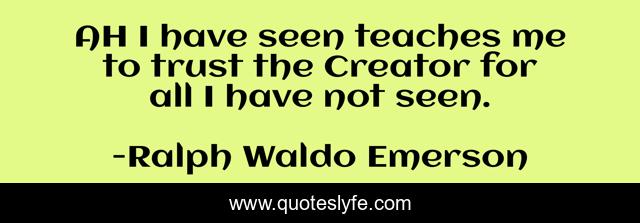 This page presents the quote "AH I have seen teaches me to trust the Creator for all I have not seen.". Author of this quote is Ralph Waldo Emerson. .