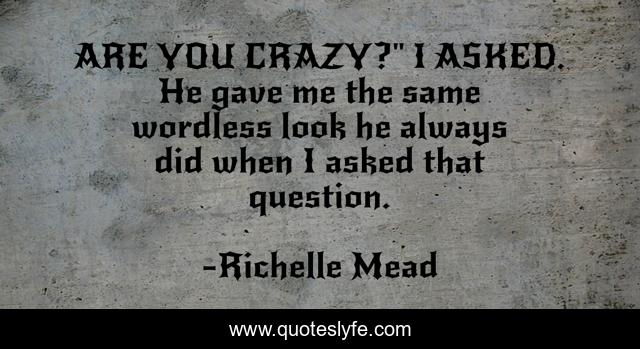 "Richelle Mead Quotes." Quoteslyfe.com, 2025. Mon. 08 Dec. 2025. <https://www.quoteslyfe.com/quote/ARE-YOU-CRAZY-I-ASKED-He-gave-81762>.