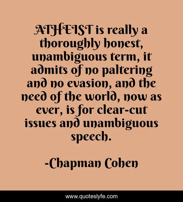"Chapman Cohen Quotes." Quoteslyfe.com, 2025. Fri. 05 Dec. 2025. <https://www.quoteslyfe.com/quote/ATHEIST-is-really-a-thoroughly-honest-unambiguous-175817>.