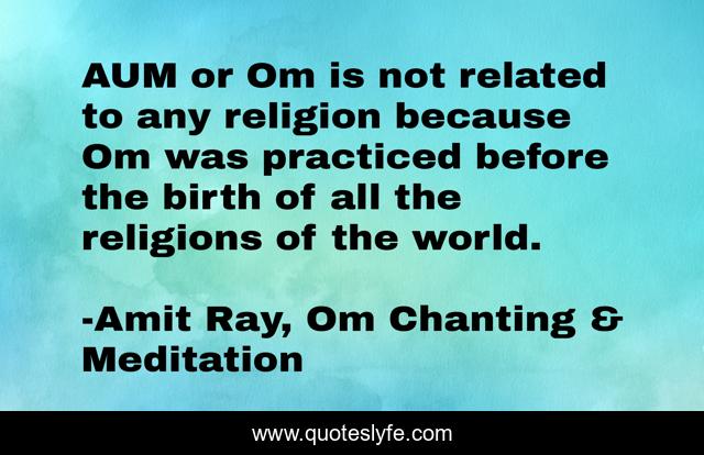This page presents the quote "AUM or Om is not related to any religion because Om was practiced before the birth of all the religions of the world.". Author of this quote is Amit Ray, Om Chanting & Meditation. This quote is about religion, meditation, inspirational, enthusiasm,.