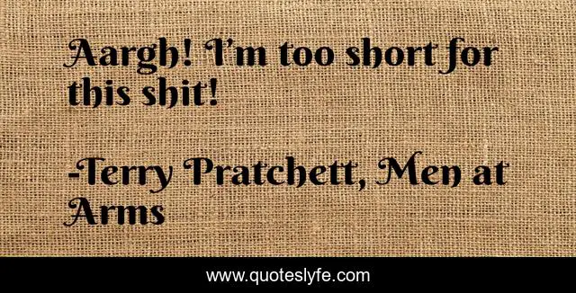 "Terry Pratchett, Men at Arms Quotes." Quoteslyfe.com, 2025. Fri. 05 Dec. 2025. <https://www.quoteslyfe.com/quote/Aargh-I-m-too-short-for-this-149748>.