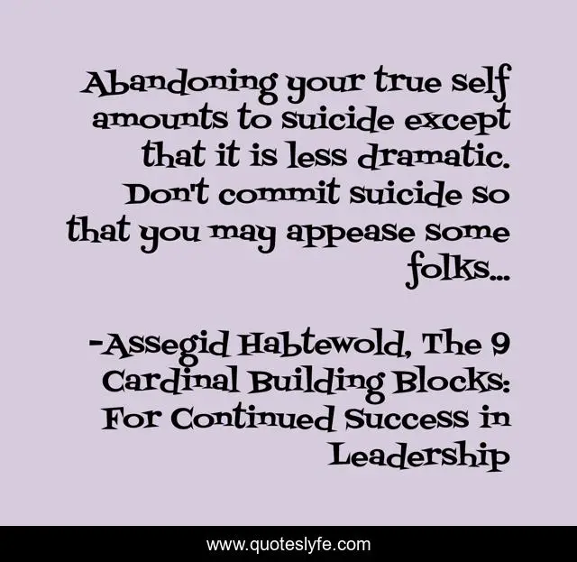 "Assegid Habtewold, The 9 Cardinal Building Blocks: For Continued Success in Leadership Quotes." Quoteslyfe.com, 2025. Mon. 08 Dec. 2025. <https://www.quoteslyfe.com/quote/Abandoning-your-true-self-amounts-to-suicide-144654>.