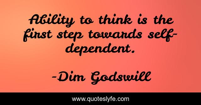 This page presents the quote "Ability to think is the first step towards self-dependent.". Author of this quote is Dim Godswill. .