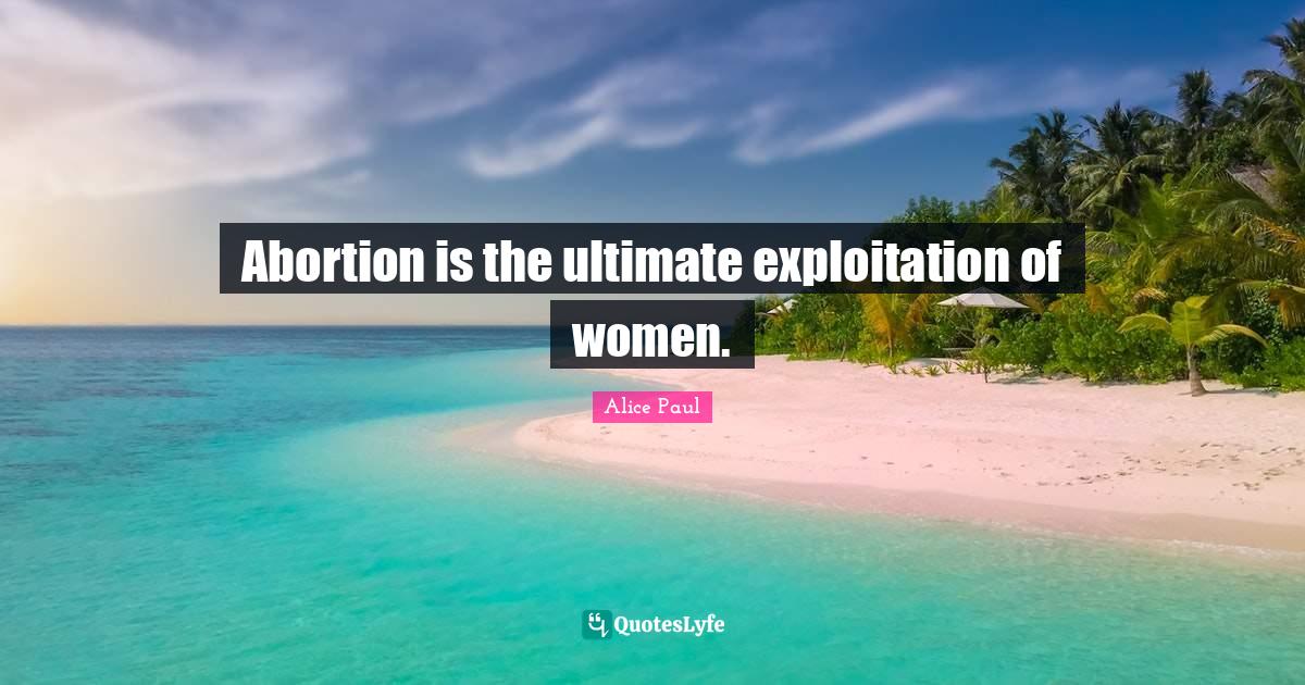 "Alice Paul Quotes." Quoteslyfe.com, 2026. Sat. 21 Mar. 2026. <https://www.quoteslyfe.com/quote/Abortion-is-the-ultimate-exploitation-of-women-358213>.
