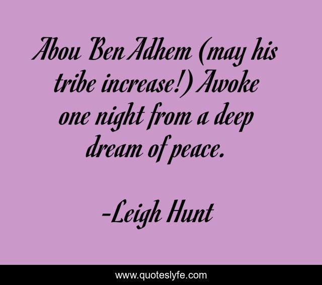 This page presents the quote "Abou Ben Adhem (may his tribe increase!) Awoke one night from a deep dream of peace.". Author of this quote is Leigh Hunt. .