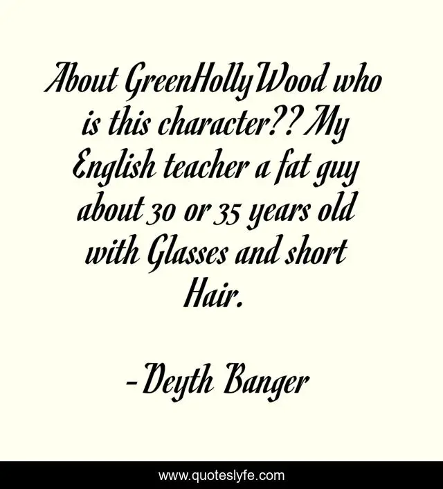 This page presents the quote "About GreenHollyWood who is this character?? My English teacher a fat guy about 30 or 35 years old with Glasses and short Hair.". Author of this quote is Deyth Banger. This quote is about hair, greenhollywood, short, character, glasses,.