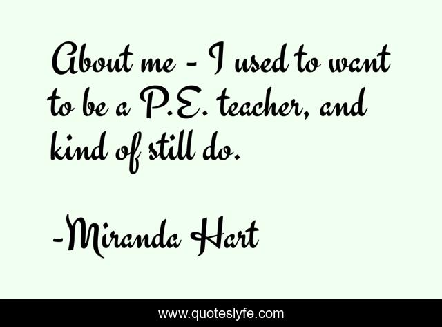This page presents the quote "About me - I used to want to be a P.E. teacher, and kind of still do.". Author of this quote is Miranda Hart. This quote is about me, kind,.